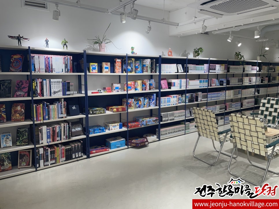 지하에는 각종 보드게임, 만화책 전집 등이 있어요.
