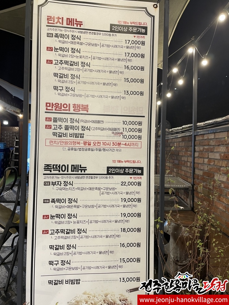 22,000원 부자정식 15,000원 떡갈비정식 17,000원 족떡이정식 10,000원 떡갈비 비빔밥