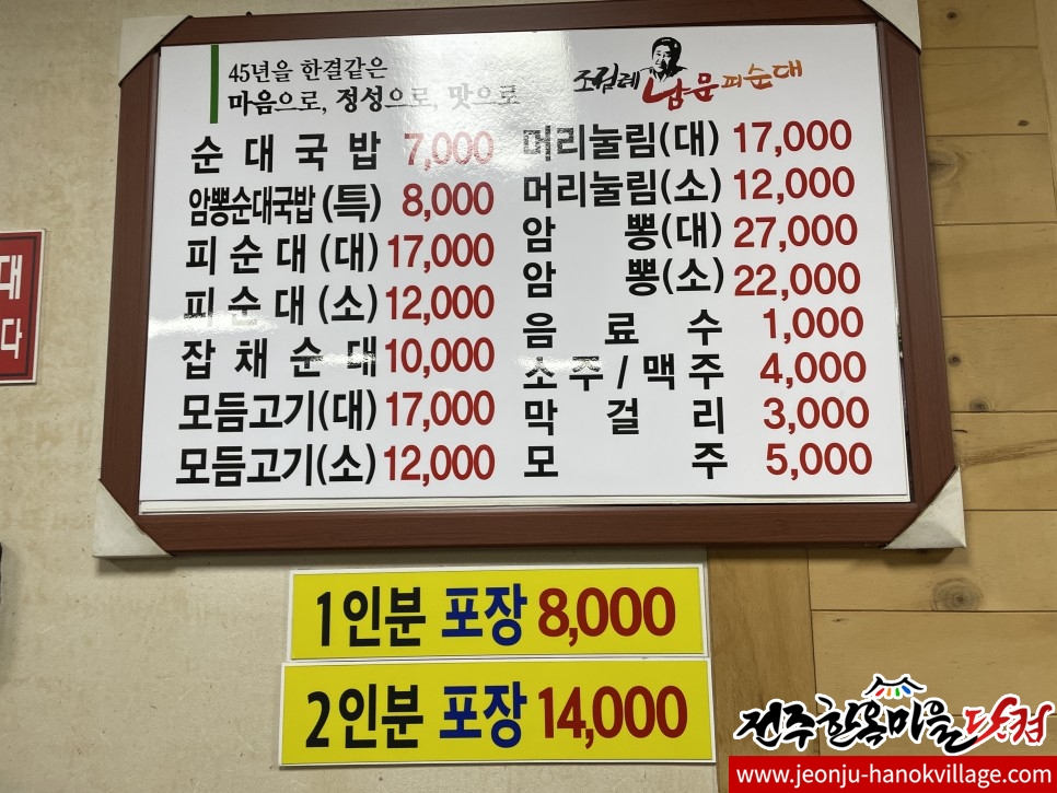 피순대(소) 12,000 잡채순대 10,000 ...
