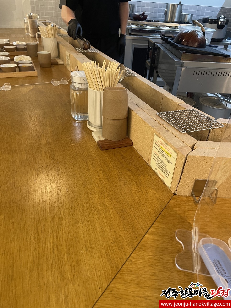 Bar 형식의 테이블로 칸막이가 설치되어 있습니다.