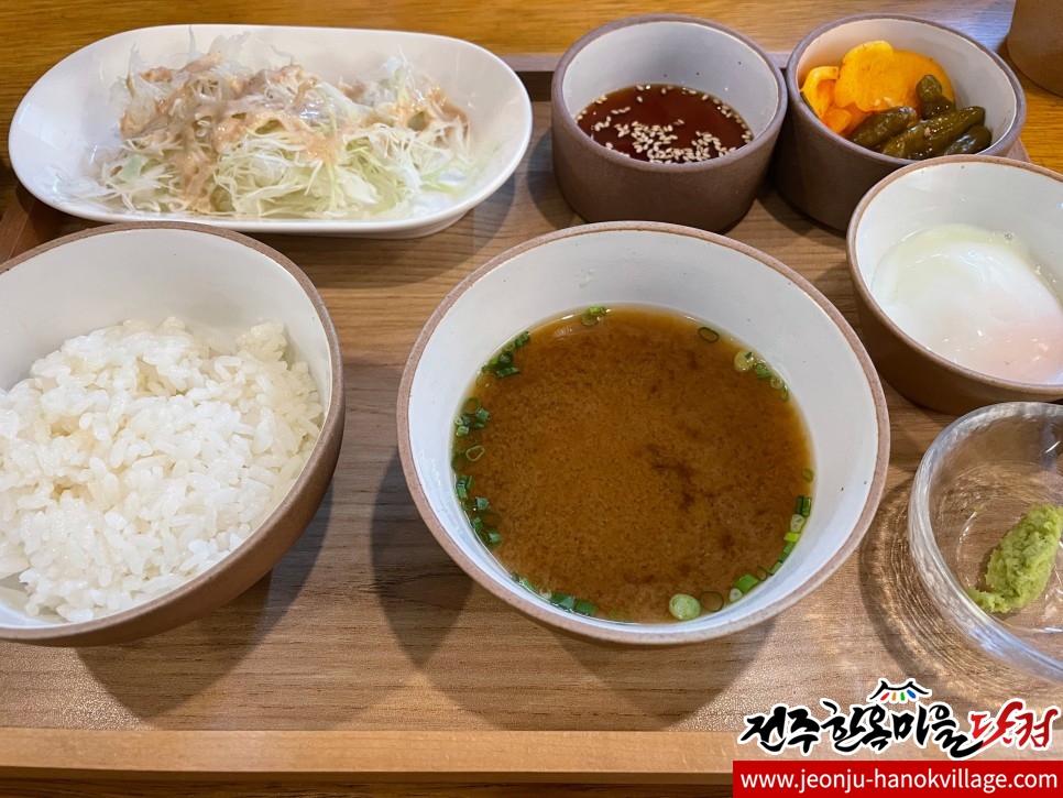 두번째 함박 : 온센타마고(온천계란)을 넣고 타래소스를 뿌려 밥과 비벼먹어요