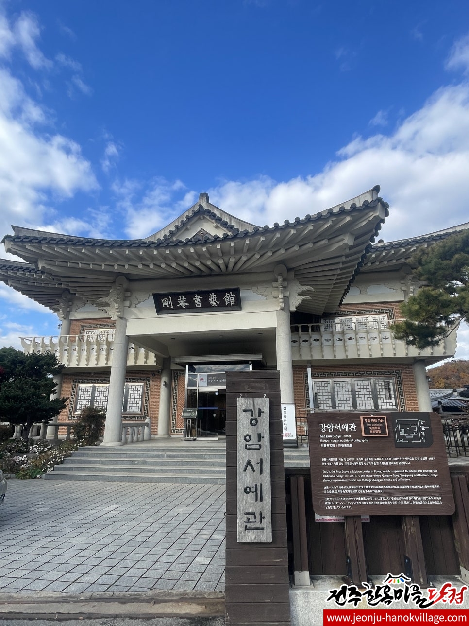 서예전문전시관으로 1913년 전북 김제에서 태어나 1965년 전주로 이거하신 서예계의 대가 강암 송성용 선생께서 서화작품 및 서예관 부지등의 소유재산을 전주시에 기부, 사회에 환원의사 표명을 하여 건축하였습니다. (1990~1994년)