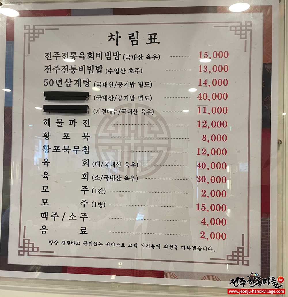 전주전통육회비빔밥 15,000원 주류 4,000원 ...