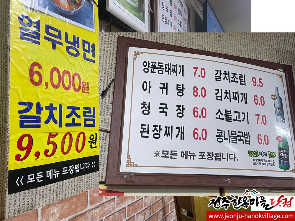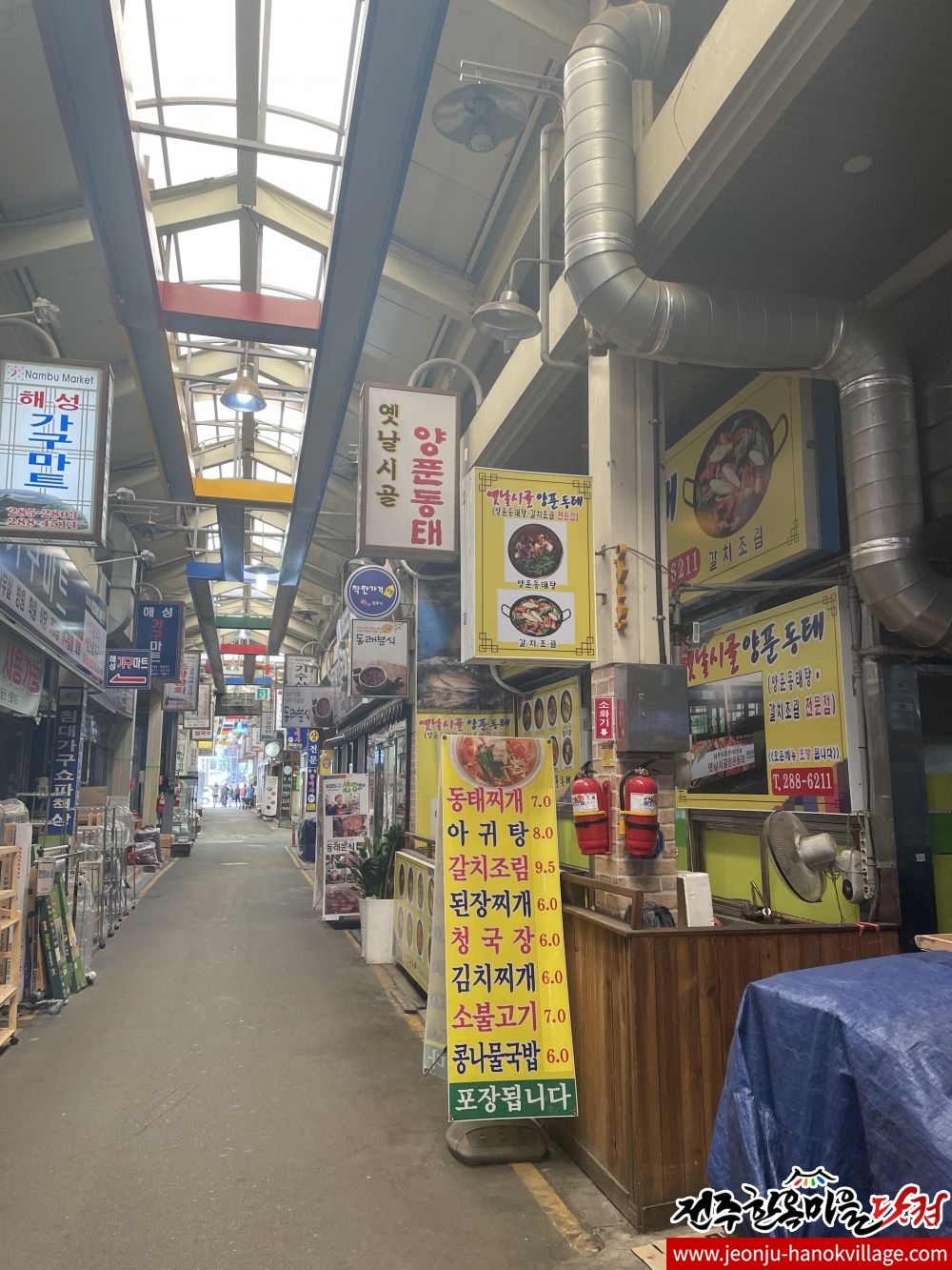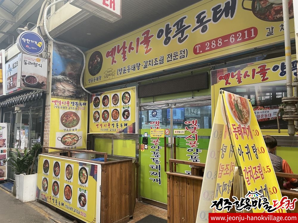 옛날시골양푼동태 - 전주한옥마을 남부시장내 동태탕, 갈치조림, 소불고기뚝배기 등 아침식사 가능