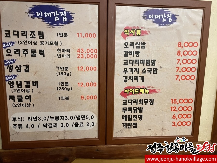서학동 이대감집 - 전주한옥마을 근처 - 코다리조림, 코다리비빔밥, 오리주물럭 쌈밥, 백숙 등