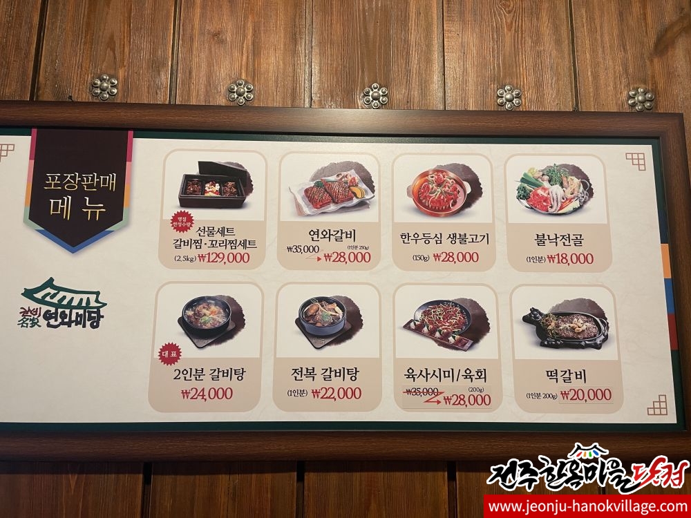 (갈비탕 외 불낙전골, 소갈비, 육사시미 등)