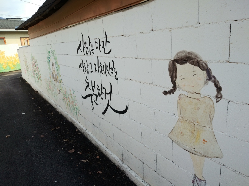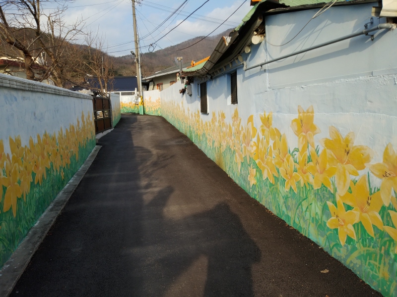 평지의 시골마을 벽화길을 걸으실 수 있어요.